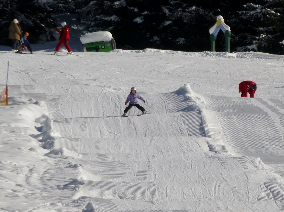 De kinderen voelen zich erg op hun gemak bij de sleeplift Mandarfen. Hier is er een eigen lift en een oefengebied met transportbanden voor de kleintjes. Helaas ligt het Kinderland niet direct in het skigebied, maar aan de andere kant van het dorp Mandarfen.