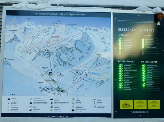 Je vindt gemakkelijk je weg in het skigebied. Bij veel splitsingen vind je bewegwijzering en informatie. Bij het dalstation van de Rifflseebahn en de Sunnaalmbahn zijn interactieve schermen te vinden die je voorzien van actuele informatie, zoals de weersvoorspelling.