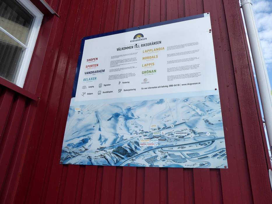 In het skigebied Riksgränsen zijn er op belangrijke punten pistekaarten en alle pistes zijn met namen aangegeven. Informatie over de geopende liften is te vinden bij de dalstations in Riksgränsen en Katterjåkk.