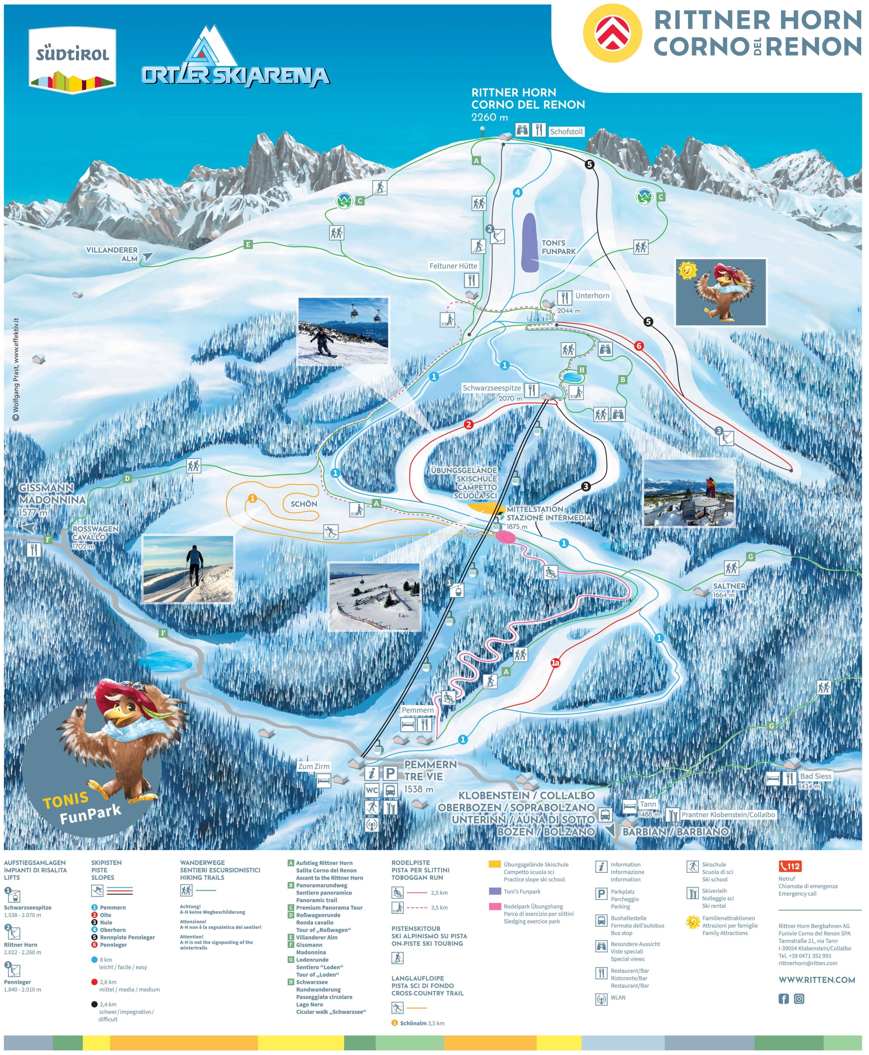 Pistekaart Rittner Horn - Ritten seizoen 2025/2026