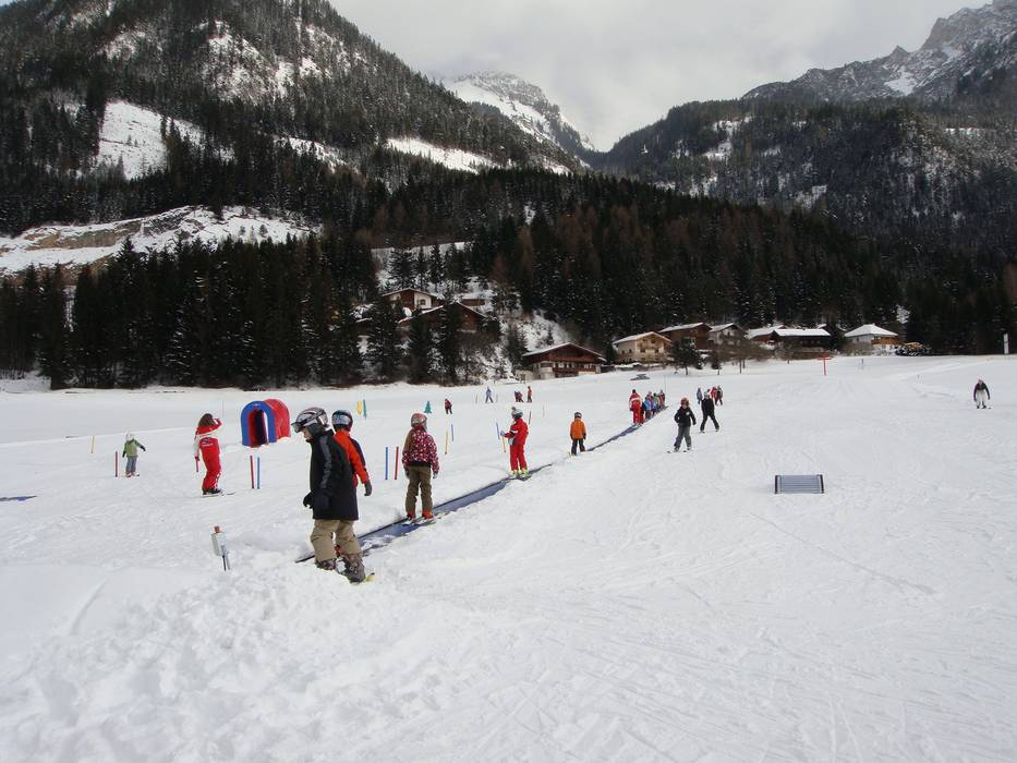 Ski-kinderland in het dorp Maurach (zonneskiweide tegenover Seehotel Mauracherhof), ca. 1 km van de Rofanseilbahn
