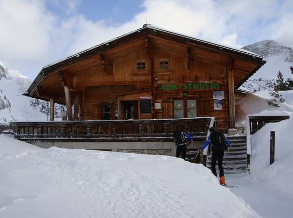 De gezellige berghut biedt traditionele gerechten en het zonneterras overtuigt met een prachtig panoramisch uitzicht.