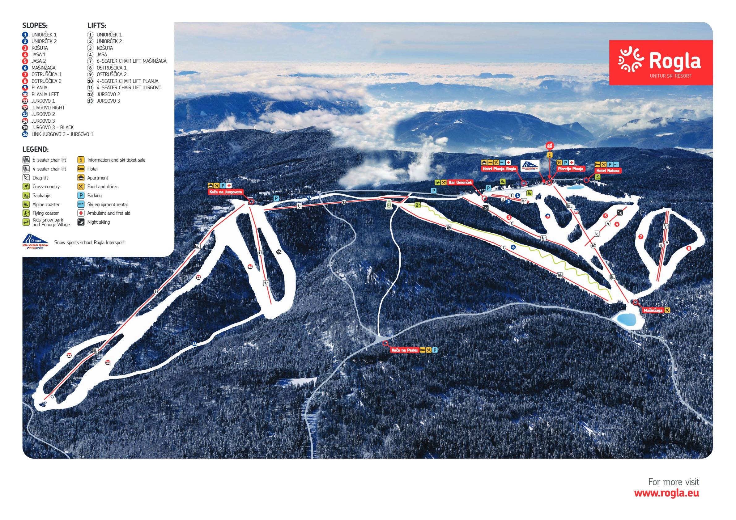 Rogla (0,1 km), Oplotnica (12 km), Zreče (16 km) Plaatsen bij het skigebied