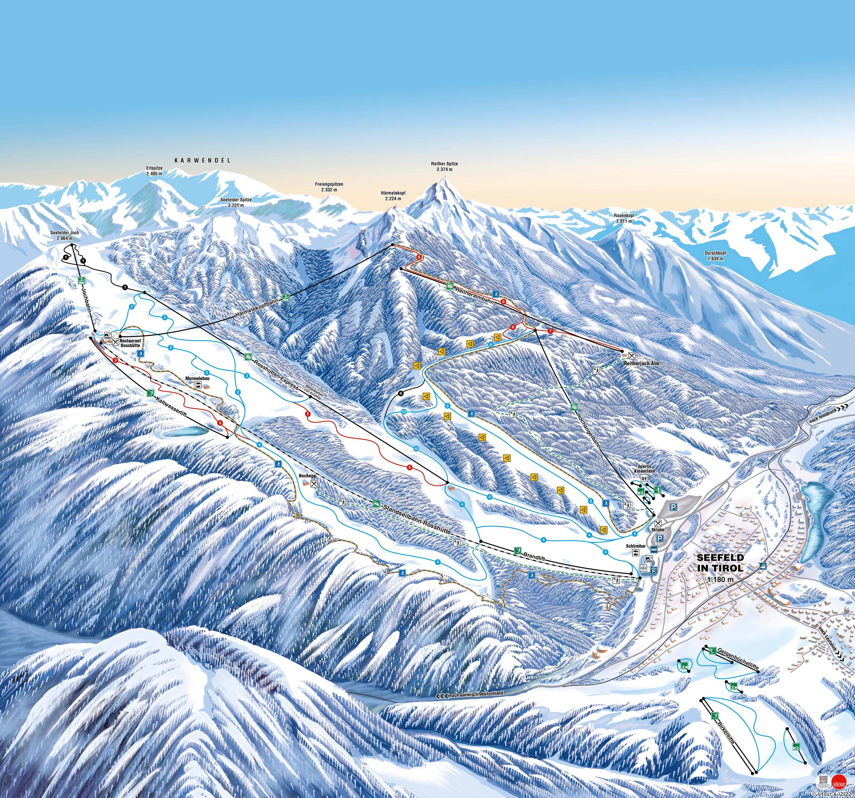 Pistekaart Bergbahnen Rosshütte – Seefeld seizoen 2025/2026
