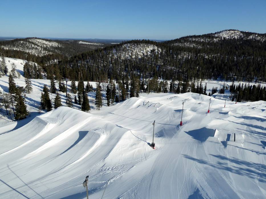 Het skigebied Ruka biedt naast het grootste snowpark van Finland ook andere kleinere parken en een superpipe.