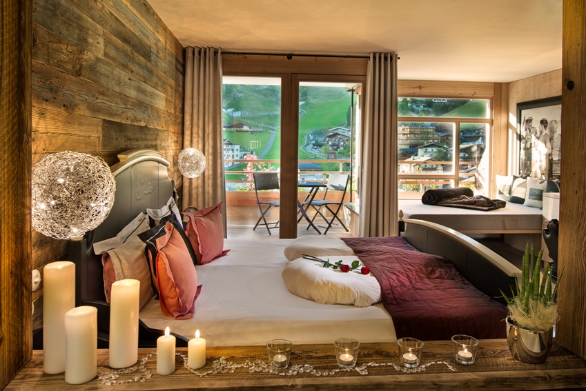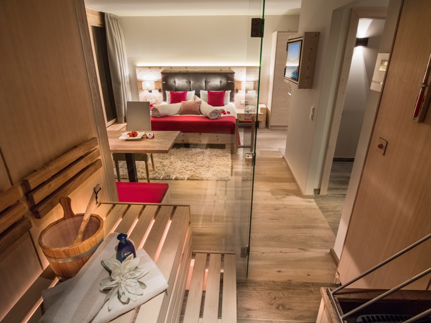 Alle kamers en suites bestaan voornamelijk uit sparren-, zirben- of eikenhout. Hout als natuurlijk bouwmateriaal geeft de kamers een unieke sfeer – ideaal om te ontspannen, tot rust te komen en op te laden. De kamers en suites nodigen ook uit tot romantische, knusse momenten met z’n tweeën. In het “Penthouse Juwel” en de “Romantik Suite Juwel” wachten gasten gezelligheid en luxe in een unieke panoramische ligging, bijvoorbeeld met een panorama-loggia en een panorama-badkuip. Geweldig zijn de extravagante themasuites, zoals een Stiegl-Bier-Suite met bierfontein, een Luis Trenker-Style-Suite of een Fischer Ski-Suite inclusief huurski’s. Alle suites beschikken over Grander-water drinkfonteinen, zoals in het hele hotel – in de kamers en suites, in het wellnessgedeelte en de restaurants – alleen Grander-water wordt gebruikt. Grander-water is vers bronwater dat met een eigen waterverlevendiginginstallatie, ontwikkeld door de Tiroler natuuronderzoeker Johann Grander, nog waardevoller en weldadiger wordt gemaakt.