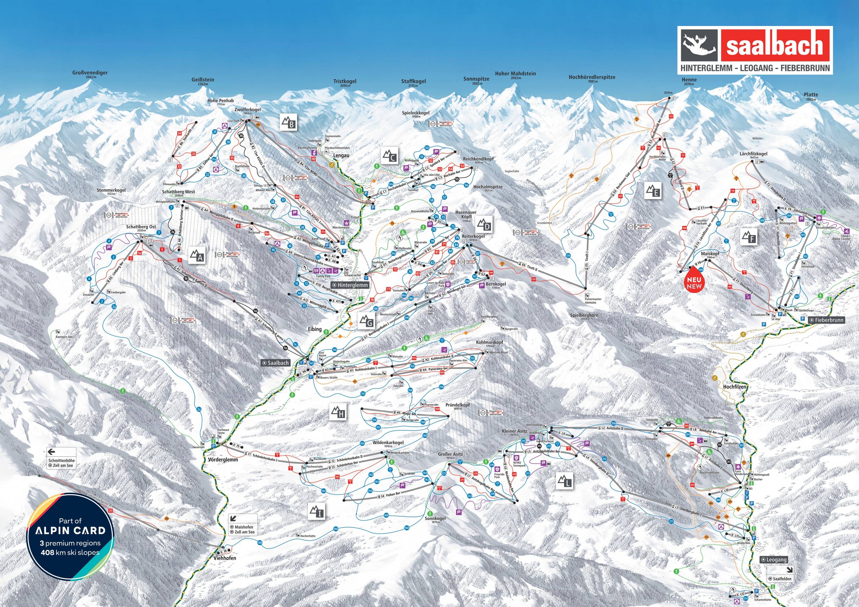 Pistekaart Saalbach Hinterglemm Leogang Fieberbrunn seizoen 2025/2026