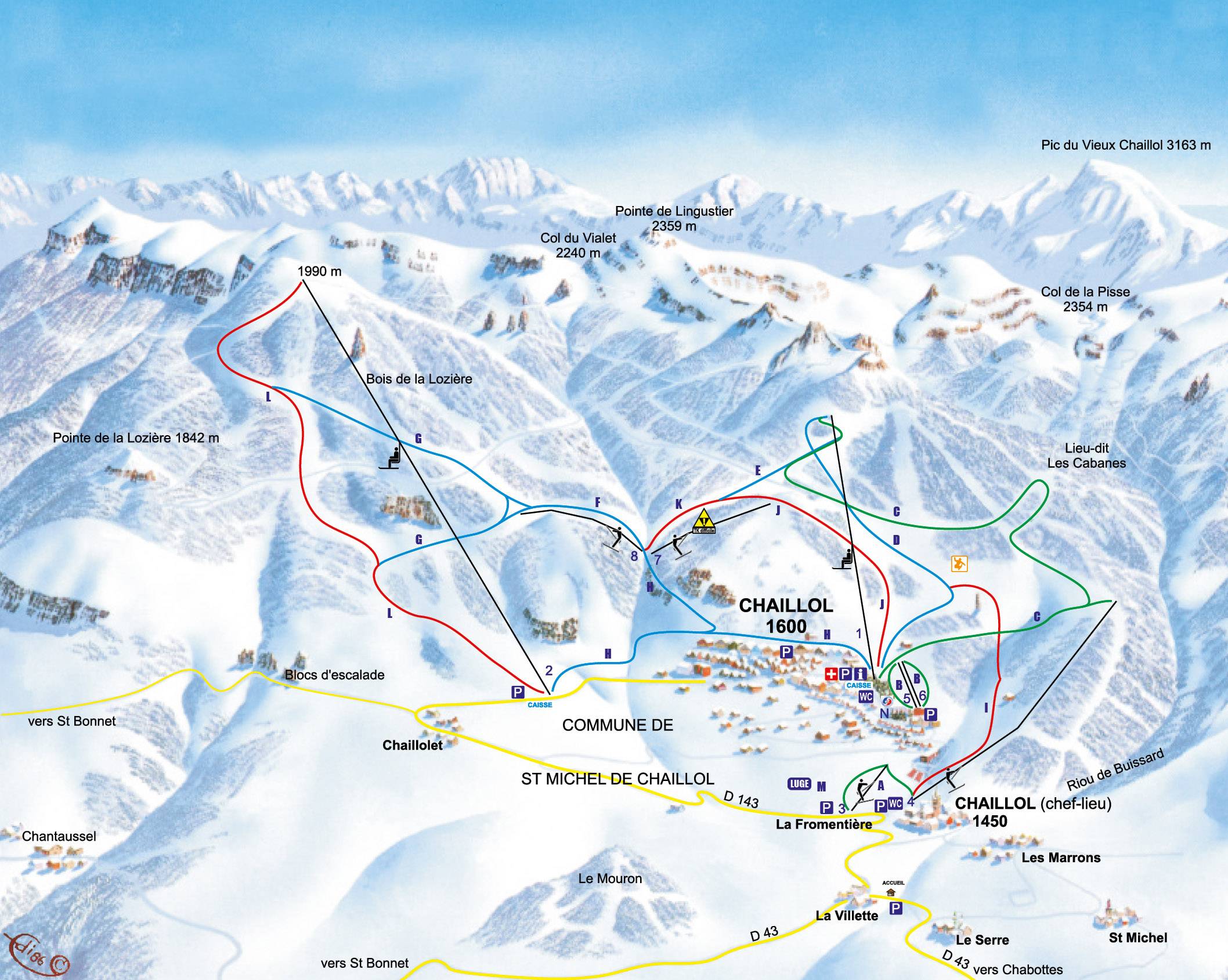 Chaillol 1600 (0 km), Chaillol 1450 (0,2 km) Plaatsen bij het skigebied