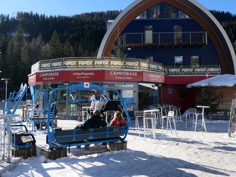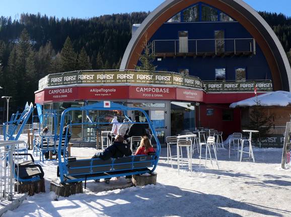 De Tognola Campo Base is de après-ski locatie in San Martino di Castrozza met een bar en goede muziek. Hier kun je dagelijks na het skiën of snowboarden terecht voor après-ski.