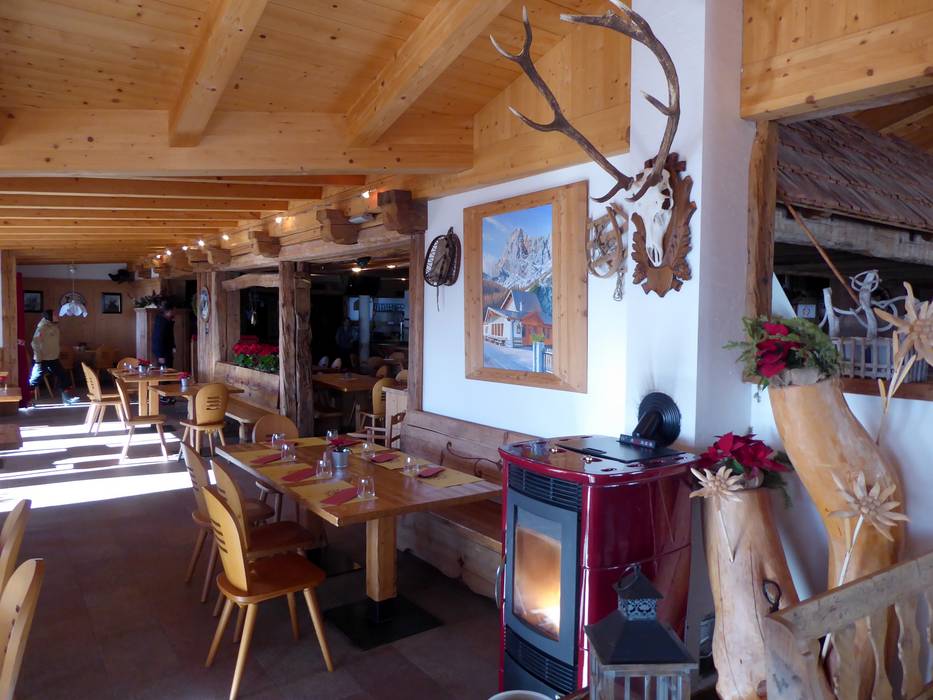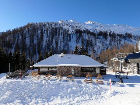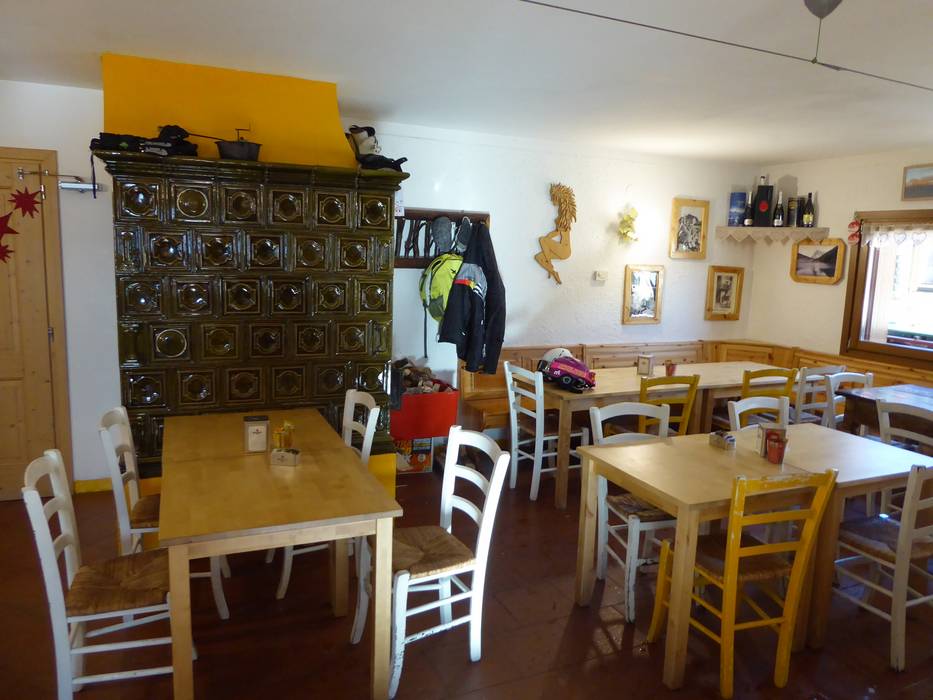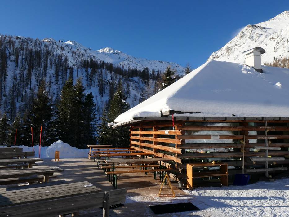 De gemoderniseerde hut heeft van buitenaf haar oude stijl behouden. Op het zonneterras en binnen kun je hier genieten van specialiteiten uit de regio. De huisgemaakte panini zijn bijzonder aan te bevelen.