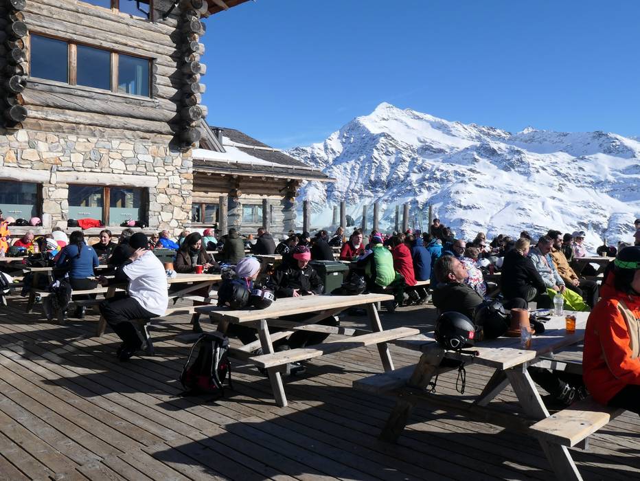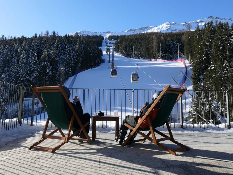 De après-ski-bar Terraza is ideaal om de skidag af te sluiten. Vanaf het terras heb je uitzicht op de dalafdaling.