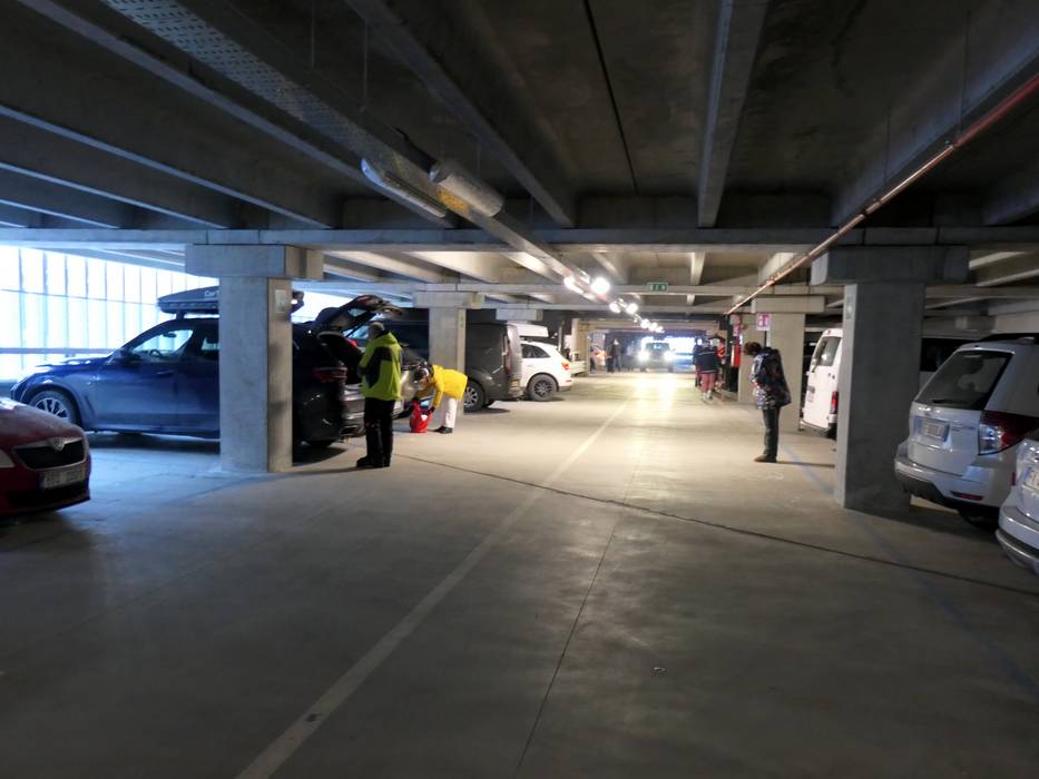 Een grote, betaalde parkeergarage bevindt zich direct bij het dalstation in Santa Caterina.