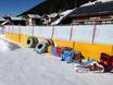 Direct bij het middelstation Plaghera van de gondelbanen bevindt zich een oefenterrein met transportband. De skischool geeft hier ook les.