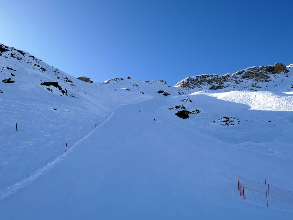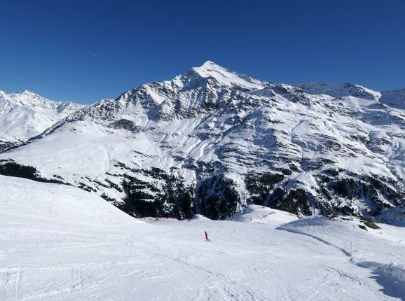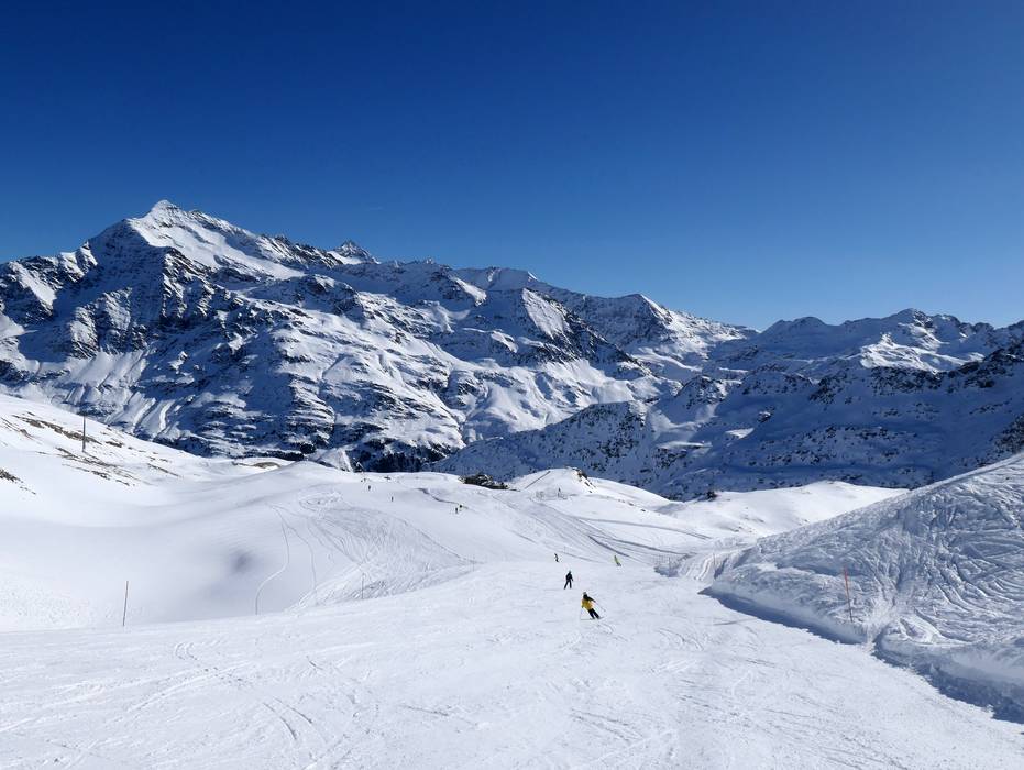 Droomachtige piste van Valle dell'Alpe richting Santa Caterina. Het uitzicht op de Pizzo Tresero (3594 m) is indrukwekkend. - Vallalpe