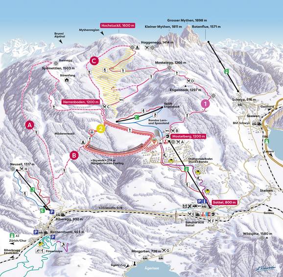 Pistekaart Sattel – Hochstuckli seizoen 2025/2026