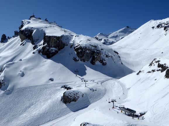 Vier opeenvolgende kabelbanen brengen de gasten van het dalstation Stechelberg via Gimmelwald, Mürren en Birg naar de top van de 2970 meter hoge Schilthorn. Als er geen wachttijden zijn, duurt de rit naar boven ongeveer 30 minuten. De tocht naar de Schilthorn is ook bij niet-skiërs zeer populair, omdat er een spectaculair panorama op de Eiger, Mönch en Jungfrau (Swiss Skyline) wacht.