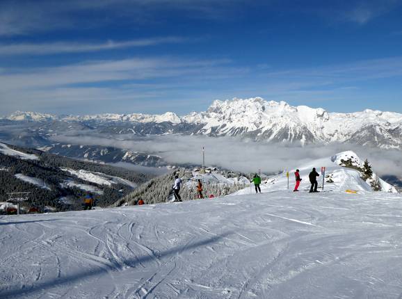 Uitzicht vanaf de Hochwurzen op het Ennstal In de 4-bergen-skischommel overal aanwezig: het…