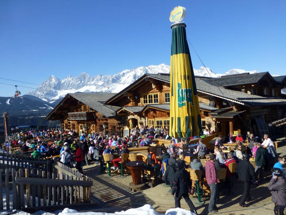Zonnig après-ski vind je bij de Hoo-Ruck Alm op de Hochwurzen. Legendarisch zijn bovendien de Spare Ribs.