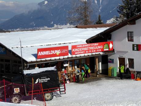 Het afgebakende Kinderland met transportbanden, sneeuwcarrousel en tal van attracties ligt direct bij het middenstation van de Kreuzjochbahn. De kleintjes (vanaf 3 maanden) worden verzorgd en begeleid in de opvangruimte van de Schischule Stubai, terwijl de ouders ontspannen hun bochten naar het dal maken en genieten van de skidag. Wie al wat meer kan, gaat naar de oefenweide Schanzlin, waar je met een eigen sleeplift, een schotellift en een touwlift stap voor stap het liften kunt oefenen.