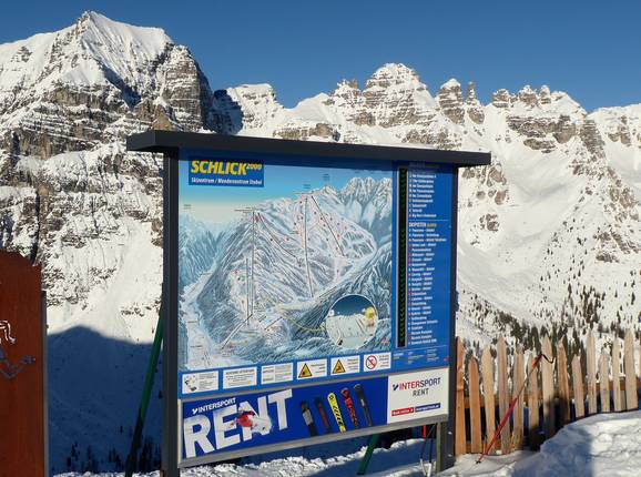 Oriëntatie (pistekaart, informatieborden, bewegwijzering piste) en veiligheid in het skigebied Schlick 2000 – Fulpmes