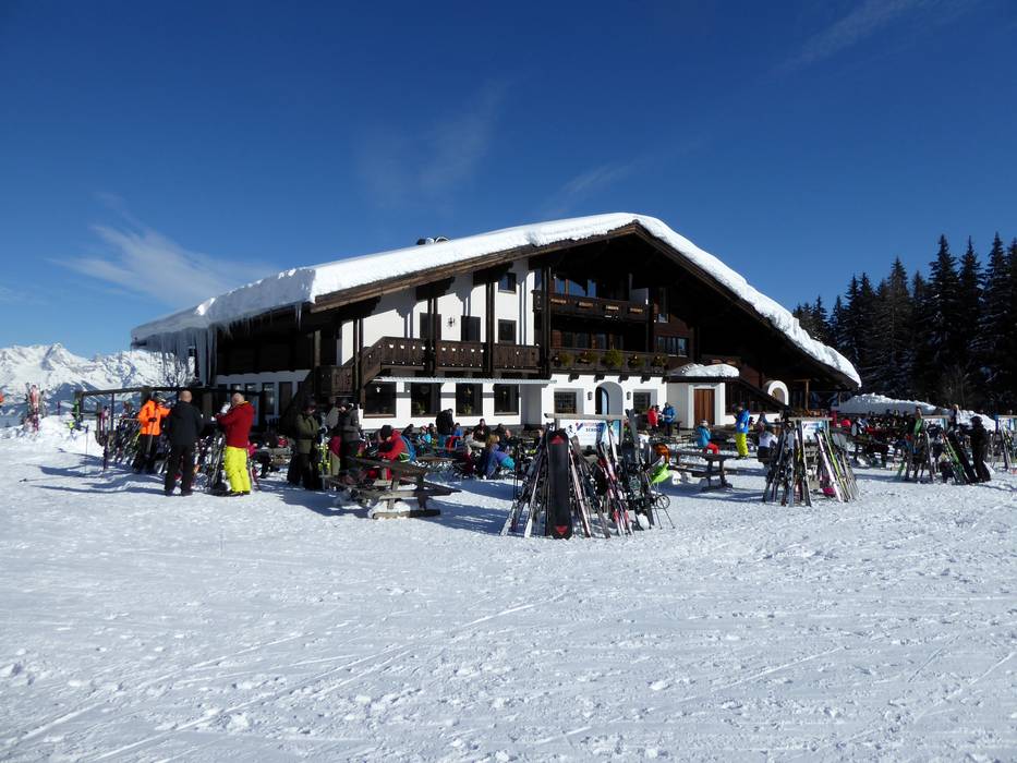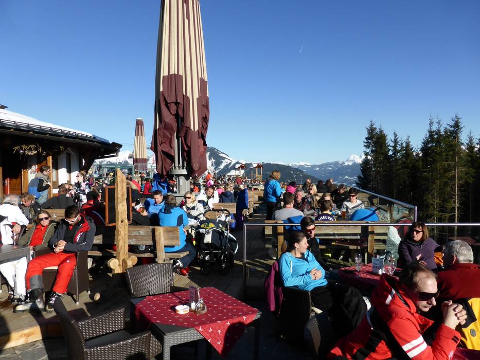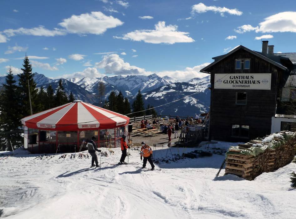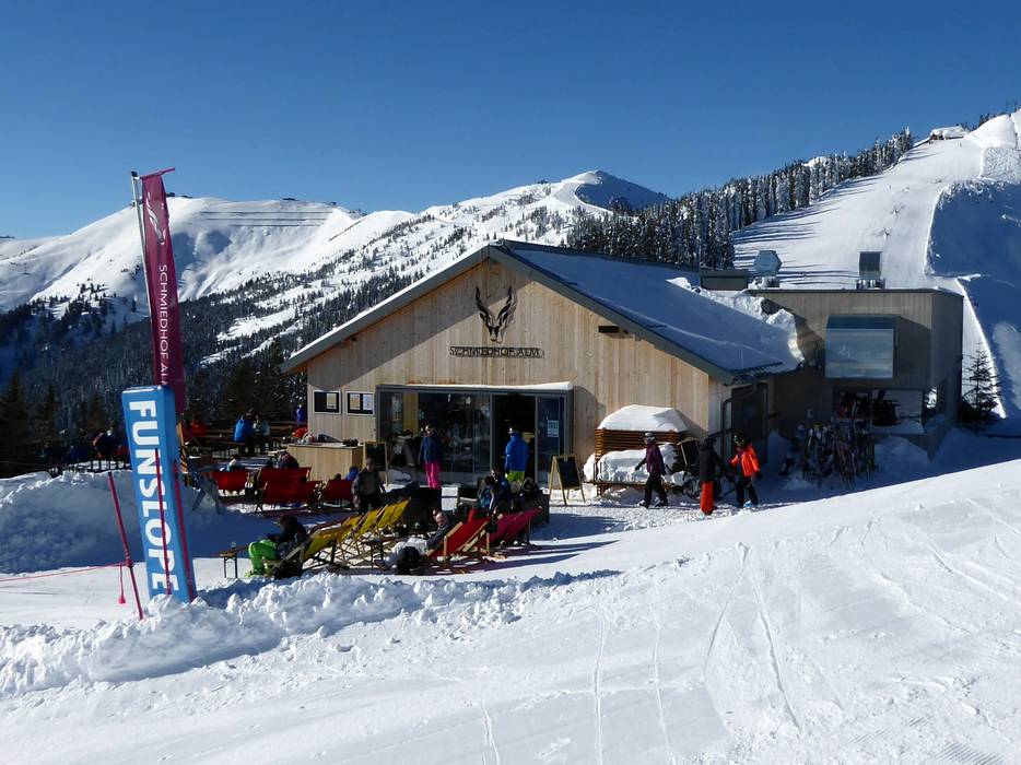 Gezellige, authentieke skihut op de Schmittenhöhe met een paraplubar, groot zonneterras en regionale specialiteiten