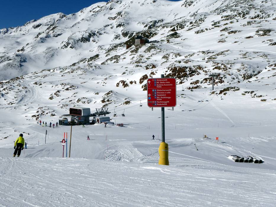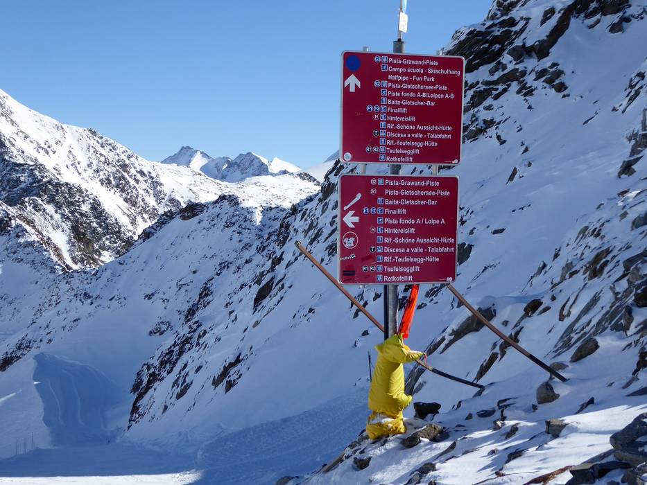 Oriëntatie (pistekaart, informatieborden, bewegwijzering piste) en veiligheid in het skigebied Schnalstaler Gletscher (Schnalstal-gletsjer)