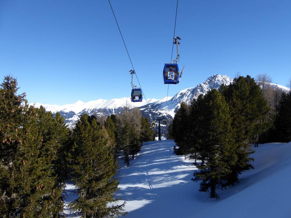 Kabelbaan/gondellift in het skigebied Schöneben (Belpiano)/​Haideralm (Malga San Valentino)