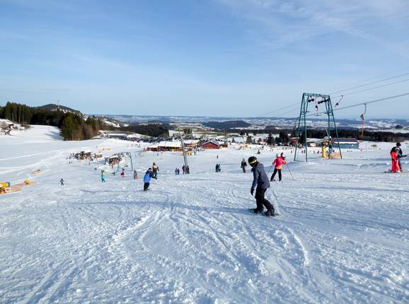 Brede en gemakkelijke pistes domineren bij de… Prachtig uitzicht op de Alpen Uitzicht vanaf het bergstation van de…