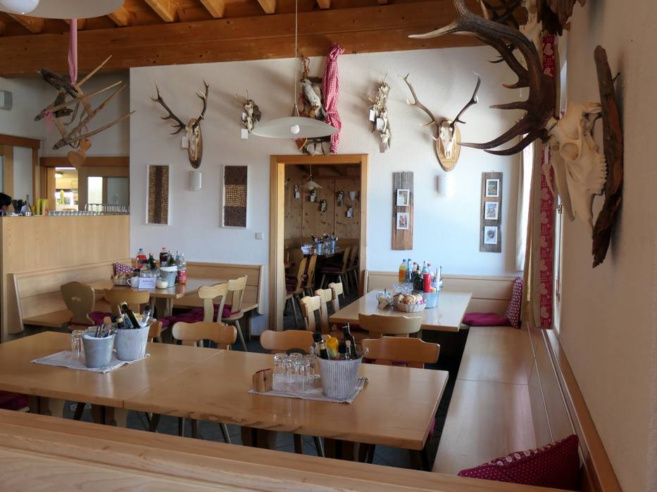 Zuid-Tiroolse keuken met moderne accenten kenmerkt het kleine restaurant. Een bar en een zonneterras nodigen uit om te blijven hangen.