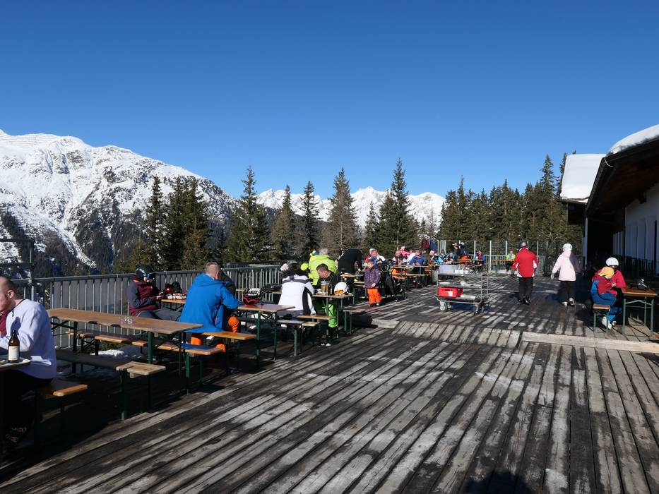 Het zelfbedieningsrestaurant met groot zonneterras en ijsbar verwent je met typische berghutgerechten, Tiroler specialiteiten en drankjes. Op de bovenverdieping zijn gratis ligstoelen beschikbaar.