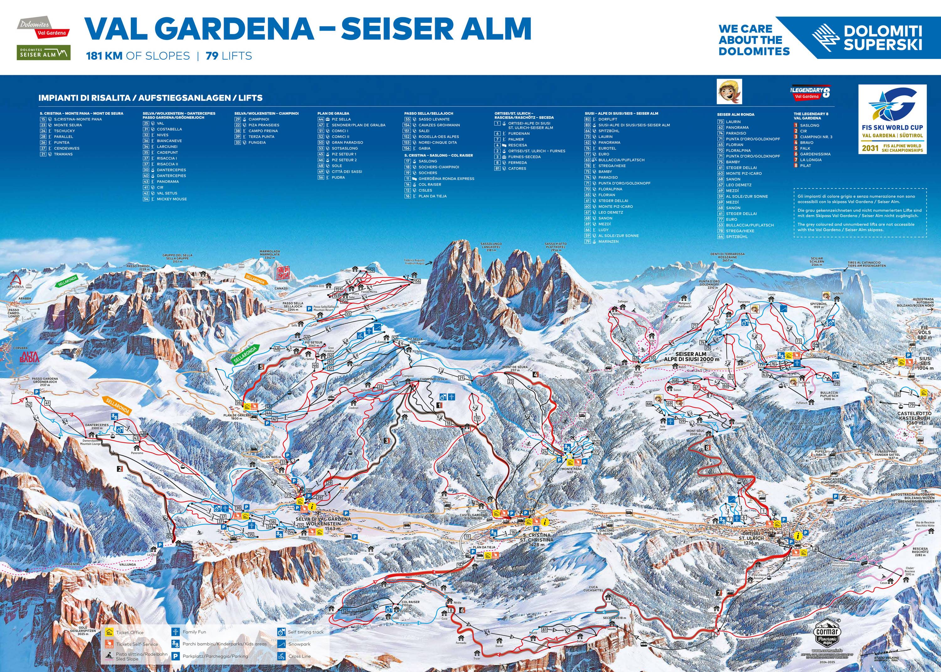 Pistekaart Val Gardena & Seiser Alm seizoen 2025/2026
