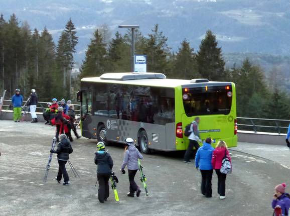 - Skibussen naar de Seiser Alm Bahn in Seis rijden vooral vanuit Völs am Schlern, Seis am Schlern en Kastelruth. Op de Seiser Alm rijdt de Almbus tussen Compatsch en Saltria. Vanuit Saltria rijdt er een betaalde bus naar Monte Pana voor de aansluiting op de Sella Ronda. In het Grödnertal zijn er ook skibussen.