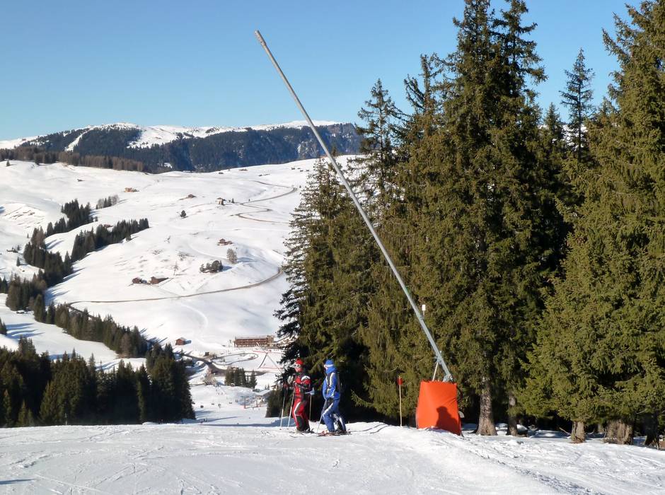 De hoge ligging en de krachtige, volledige besneeuwing van alle pistes maken de Seiser Alm zeer sneeuwzeker.