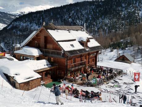 Men geniet van raclette, fondue en Franse specialiteiten op het zonneterras met een prachtig uitzicht op de pistes. Bij slecht weer zit men gezellig samen in de knusse stube.
