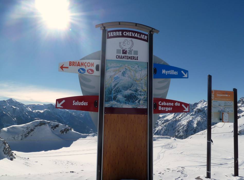Oriëntatie (pistekaart, informatieborden, bewegwijzering piste) en veiligheid in het skigebied Serre Chevalier – Briançon/Chantemerle/Villeneuve-la-Salle/Le Monêtier-les-Bains