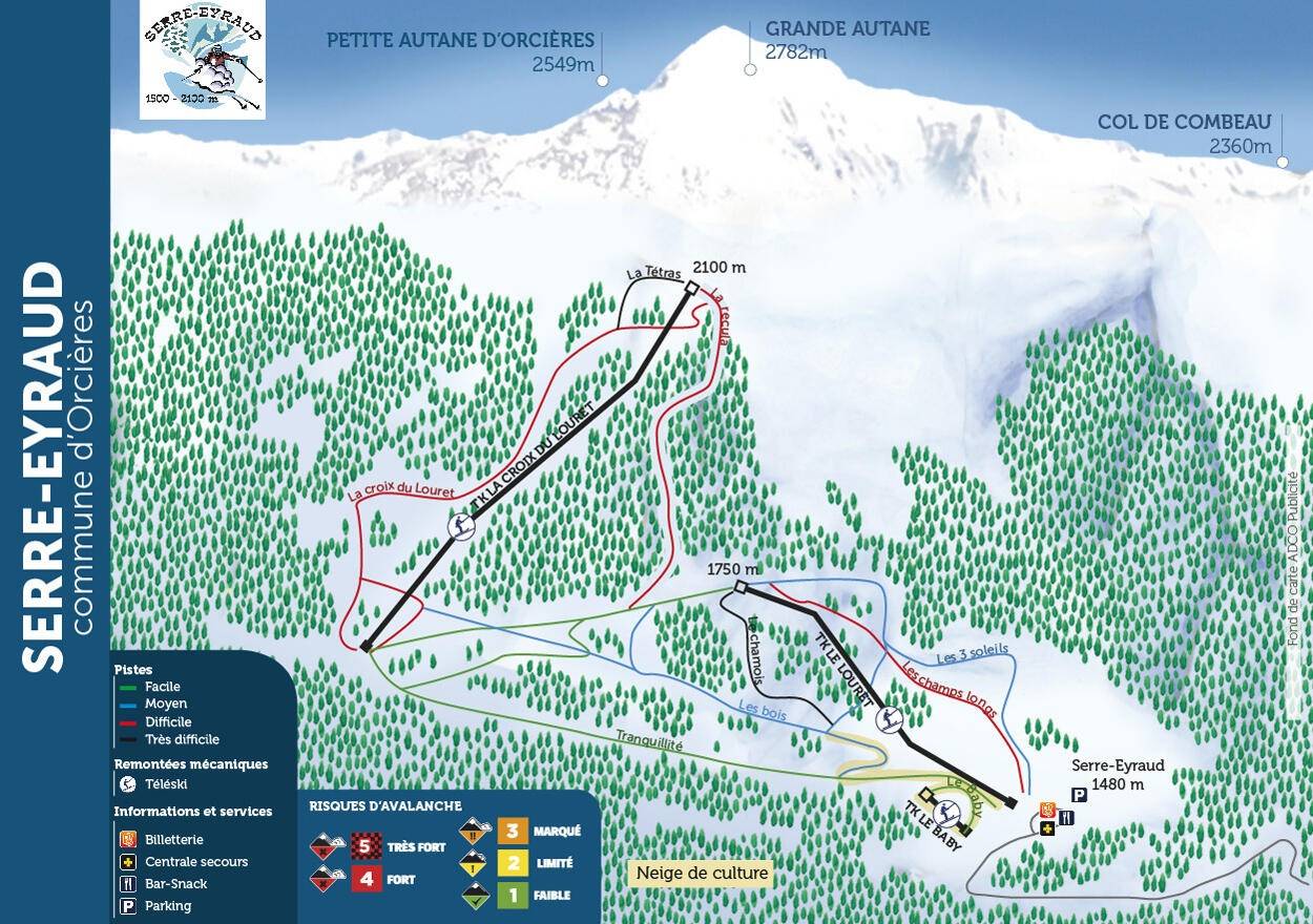 Pistekaart Serre-Eyraud (Orcières) seizoen 2025/2026