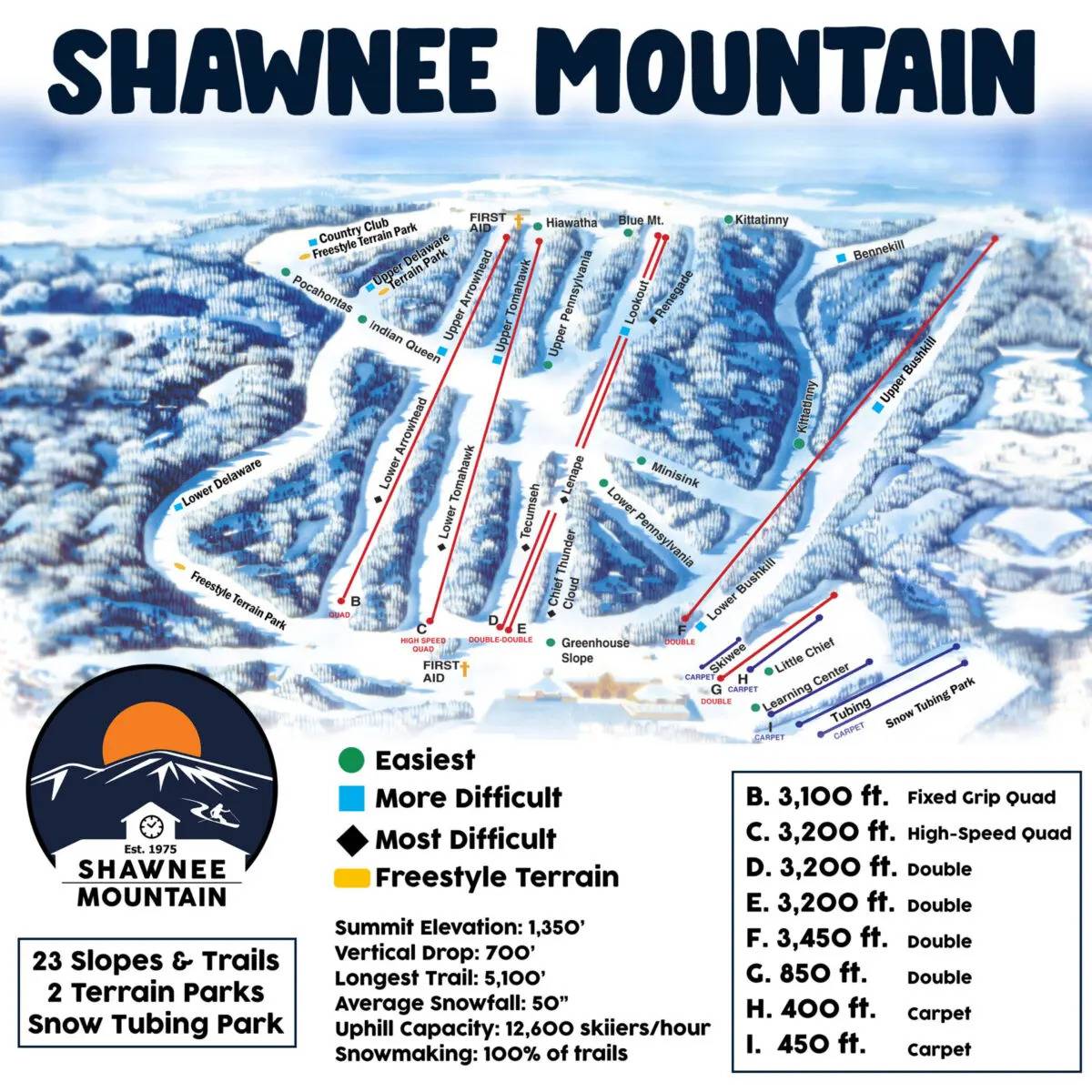 Pistekaart Shawnee Mountain seizoen 2024/2025