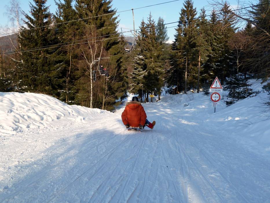 De 600 meter lange winterrodelbaan begint bij het middenstation van de stoeltjeslift. Dankzij zachte, ondersteunende besneeuwing is sneeuwzekerheid gegarandeerd. Sleeën kunnen bij het dalstation worden gehuurd en met de stoeltjeslift ga je omhoog. Een tussenstop kun je maken bij de Bergmann-Schänke om van het prachtige uitzicht te genieten. Plezier voor het hele gezin.