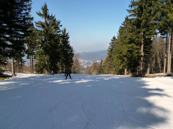 De eenvoudige afdalingen op de Silberberg slingeren parallel aan de stoeltjeslift het dal in.