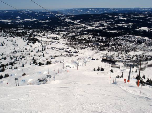 Skeikampen biedt meestal lichte tot middelzware afdalingen op deels bijna boomloze hellingen. Twee zware pistes maken het aanbod compleet.