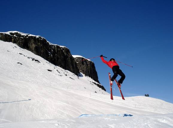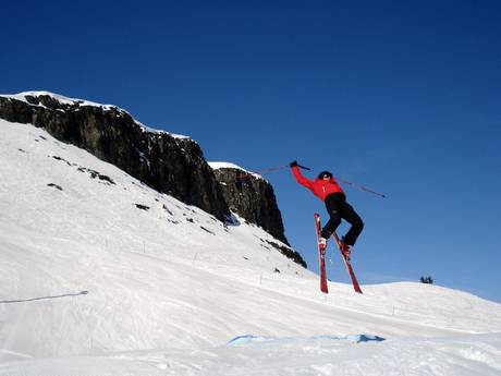 Het terreinpark bij de vierpersoonsstoeltjeslift is de perfecte plek voor snowboarders en freestylers.