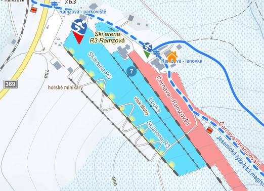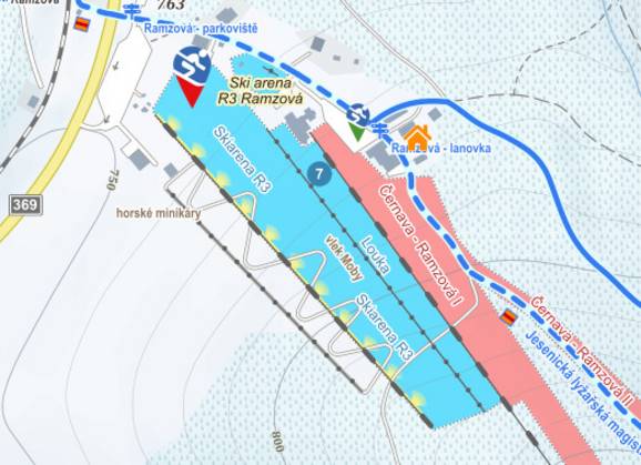 Pistekaart van het skigebied Skiaréna R3 – Ramzová