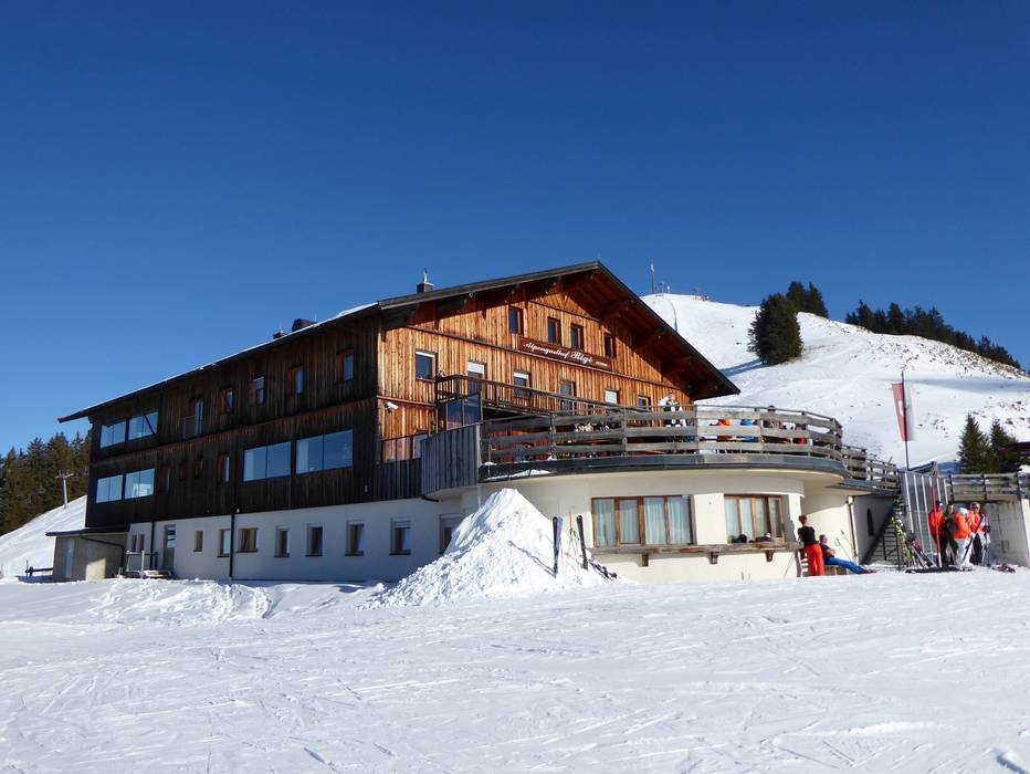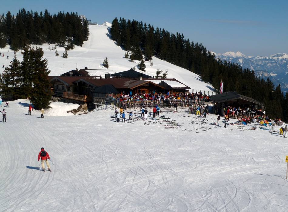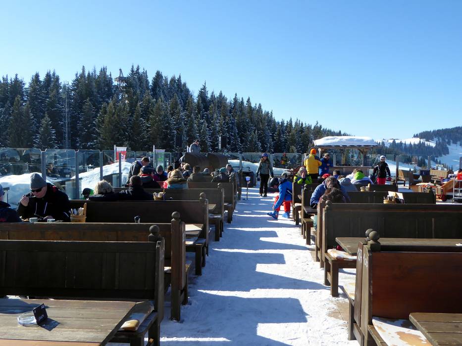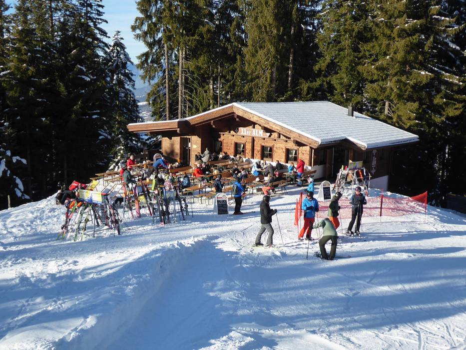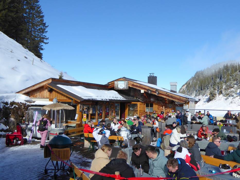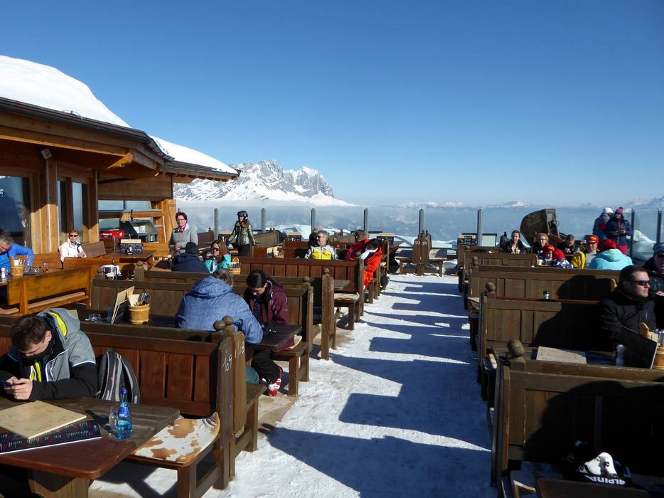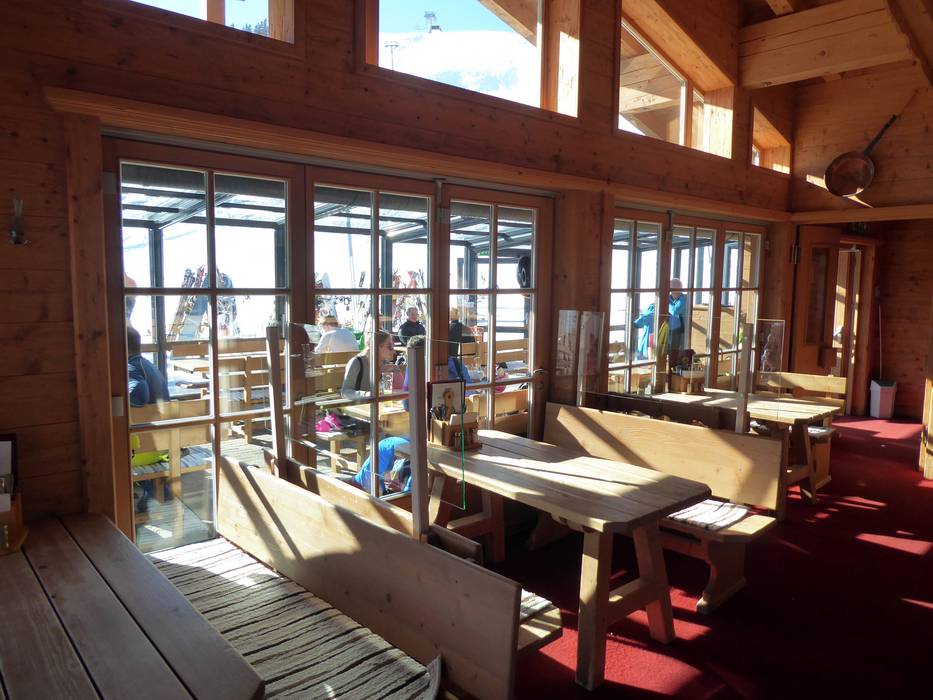 Gezellige berghut met bar en zonneterras. In de namiddag gaat men over op après-ski.
