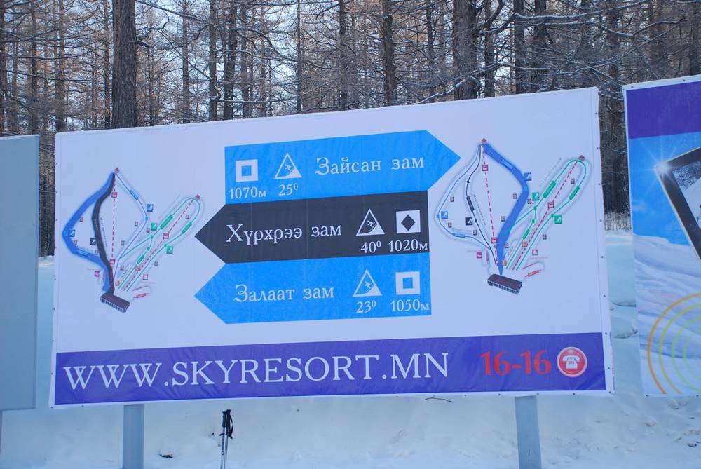 Oriëntatie (pistekaart, informatieborden, bewegwijzering piste) en veiligheid in het skigebied Sky Resort – Ulaanbaatar