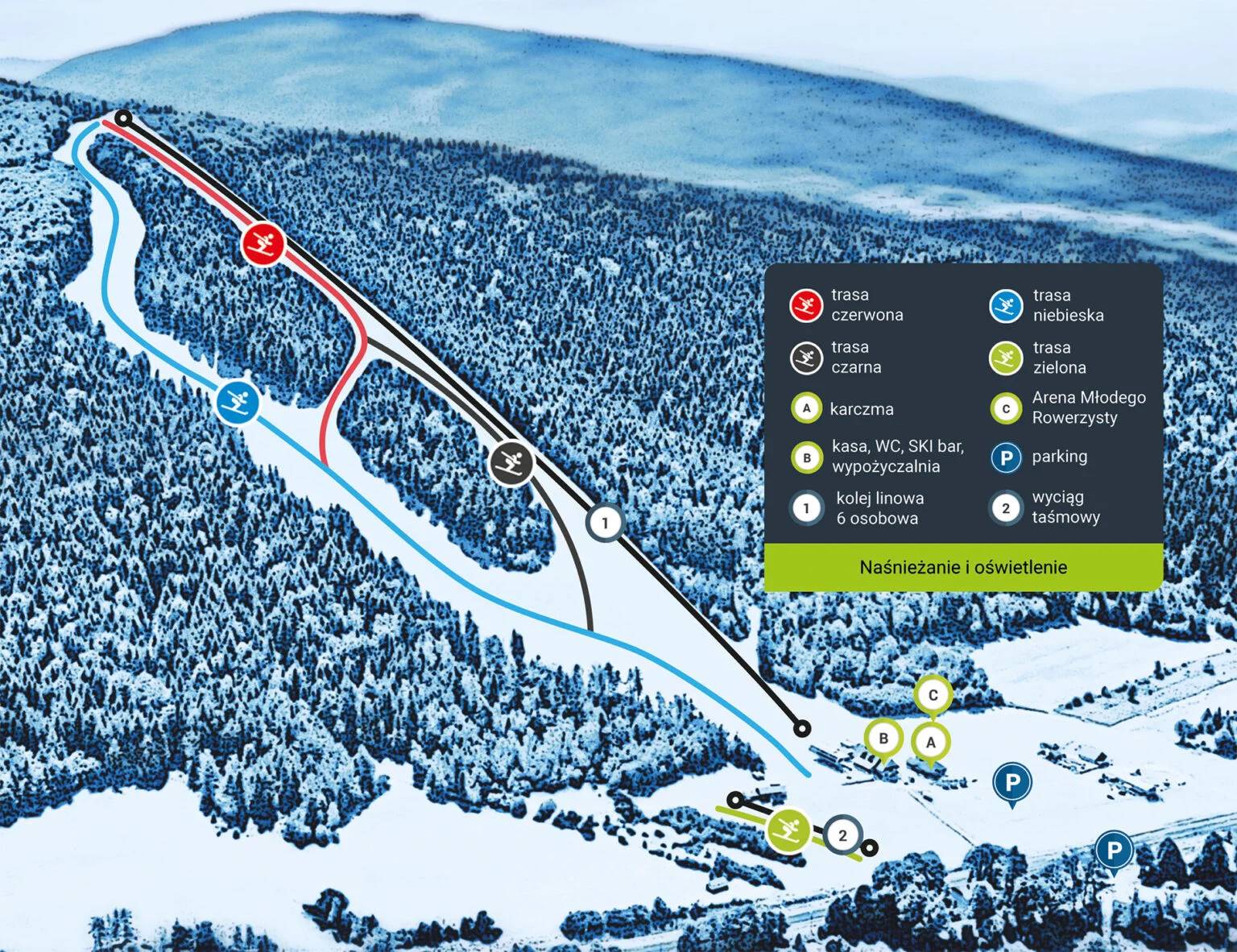 Pistekaart Śnieżnica – Kasina Wielka seizoen 2024/2025