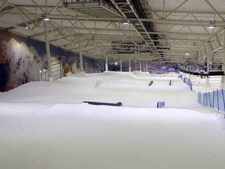 De skihal SNØ biedt een ongeveer 300 meter lang snowpark met verschillende moeilijkheidsgraden.