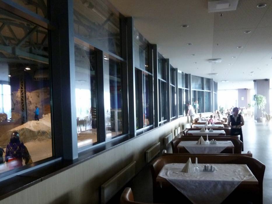 De skihal Snow Arena biedt verschillende mogelijkheden om iets te eten en te drinken. Direct bij de ingang bevindt zich een groot selfservice-restaurant. Vanaf de parkeerplaats bereik je met een lift het exclusieve restaurant "Aero Gallery". De Bo-Bar en een café in de entree maken het aanbod compleet.