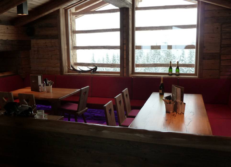 Authentieke en gezellige hut met groot zonneterras voor lunch en après-ski.