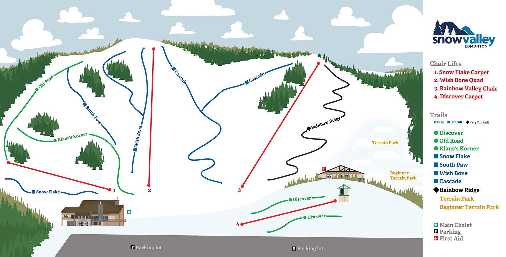 Pistekaart Snow Valley – Edmonton seizoen 2024/2025