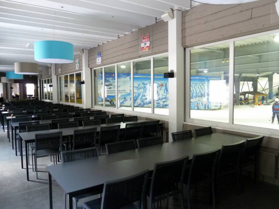 Het restaurant aan de voet van de skihal biedt direct uitzicht op de pistes. De aantrekkelijke bar nodigt uit om te blijven hangen. De hele dag door worden er warme gerechten geserveerd. ’s Avonds kun je hier ook heerlijk dineren.